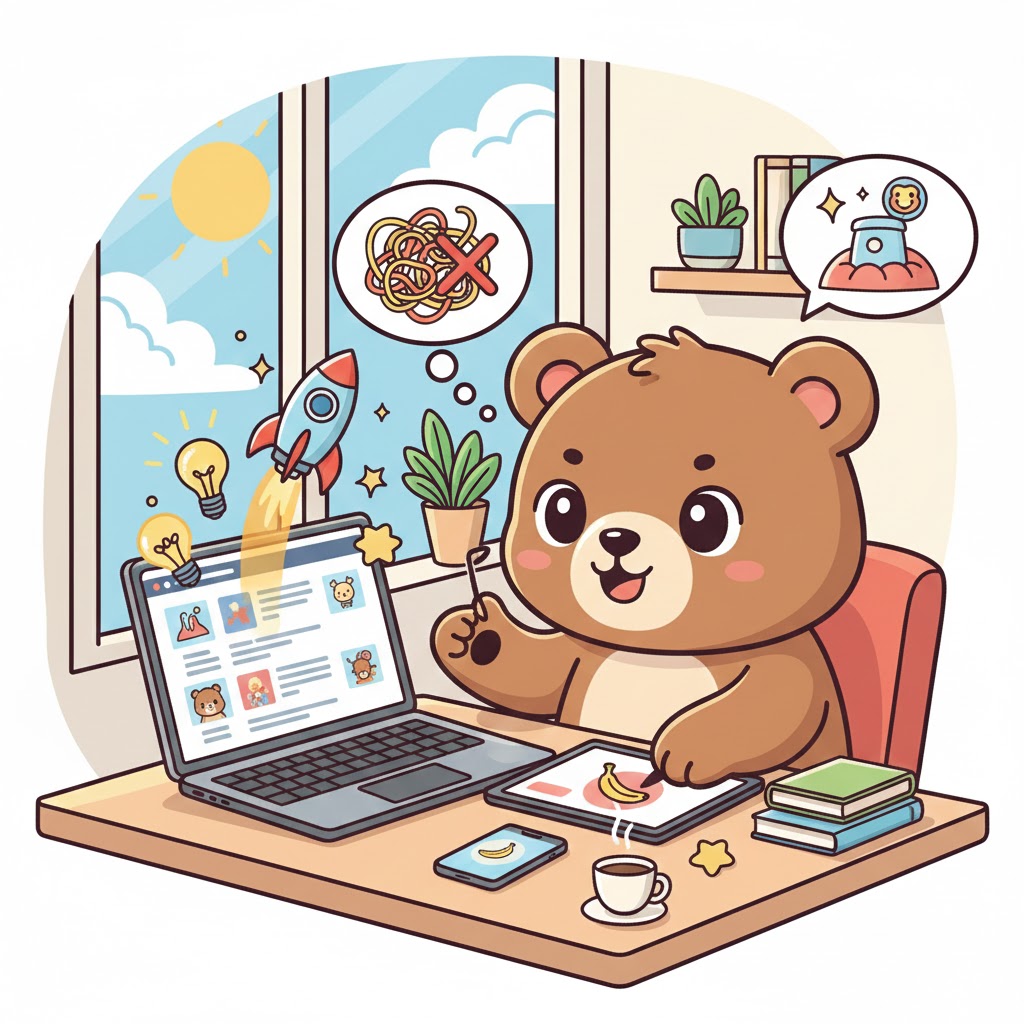 可愛らしいクマのキャラクターが、ブログ記事の楽しさを表現しているようなイメージです。